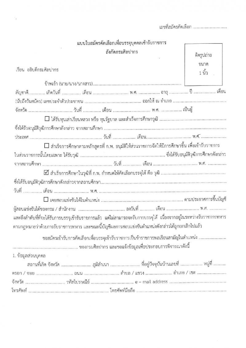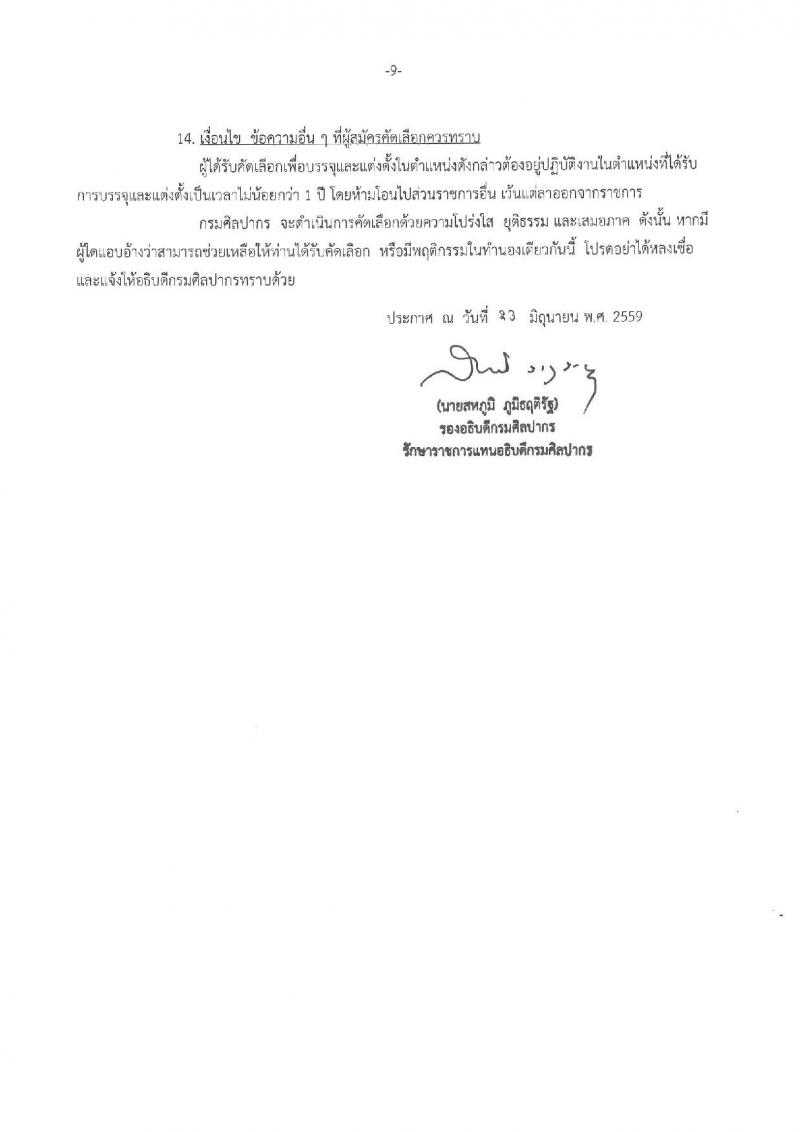 กรมศิลปากร ประกาศรับสมัครคัดเลือกเพื่อบรรจุและแต่งตั้งบุคคลเข้ารับราชการ ครั้งที่ 2/2559 จำนวน 9 ตำแหน่ง 11 อัตรา (วุฒิ ปวส. ป.ตรี ป.โท) รับสมัครสอบทางอินเทอร์เน็ตตั้งแต่วันที่ 5-20 ก.ค. 2559