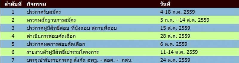 ผู้สนใจอ่านรายละเอียดเพิ่มเติมการรับสมัครได้ที่เว็บไซต์ของสถาบันทดสอบทางการศึกษาแห่งชาติฯ หรือ สทศ. (คลิ้ก...) ตั้งแต่บัดนี้จนถึงวันที่ 18 กรกฎาคม 2559 โดยจะประกาศรายชื่อผู้มีสิทธิ์สอบ/ที่นั่งสอบ/สถานที่สอบ ในวันที่ 15 สิงหาคม 2559 สอบคัดเลือกในวันที่ 28 สิงหาคม 2559 และประกาศผลสอบในวันที่ 6 ตุลาคม 2559
