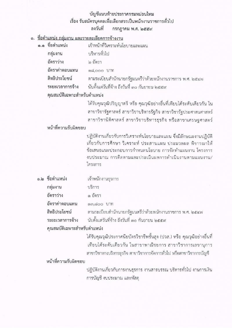 กรมหม่อนไหม ประกาศรับสมัครบุคคลเพื่อเลือกสรรเป็นพนักงานราชการทั่วไป จำนวน 2 ตำแหน่ง 3 อัตรา (วุฒิ ปวส. ป.ตรี) รับสมัครสอบตั้งแต่วันที่ 1-5 ส.ค. 2559