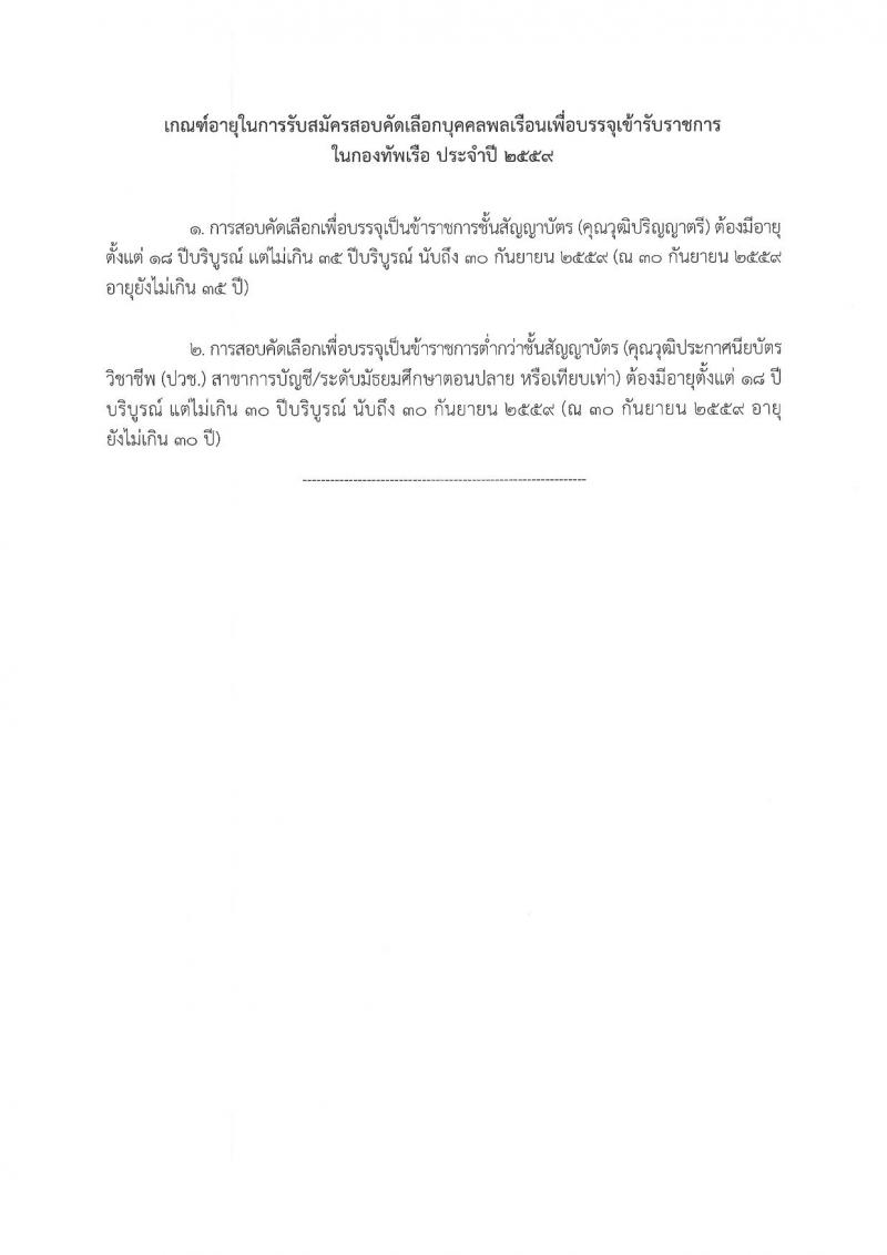 กองทัพเรือ ประกาศรับสมัครบุคคลพลเรือนเพื่อบรรจุเข้ารับราชการในกองทัพเรือ ประจำปี 2559 จำนวน 8 ตำแหน่ง 48 อัตรา (วุฒิ ม.ปลาย ปวช. ป.ตรี) รับสมัครสอบตั้งแต่วันที่ 1-22 ส.ค. 2559