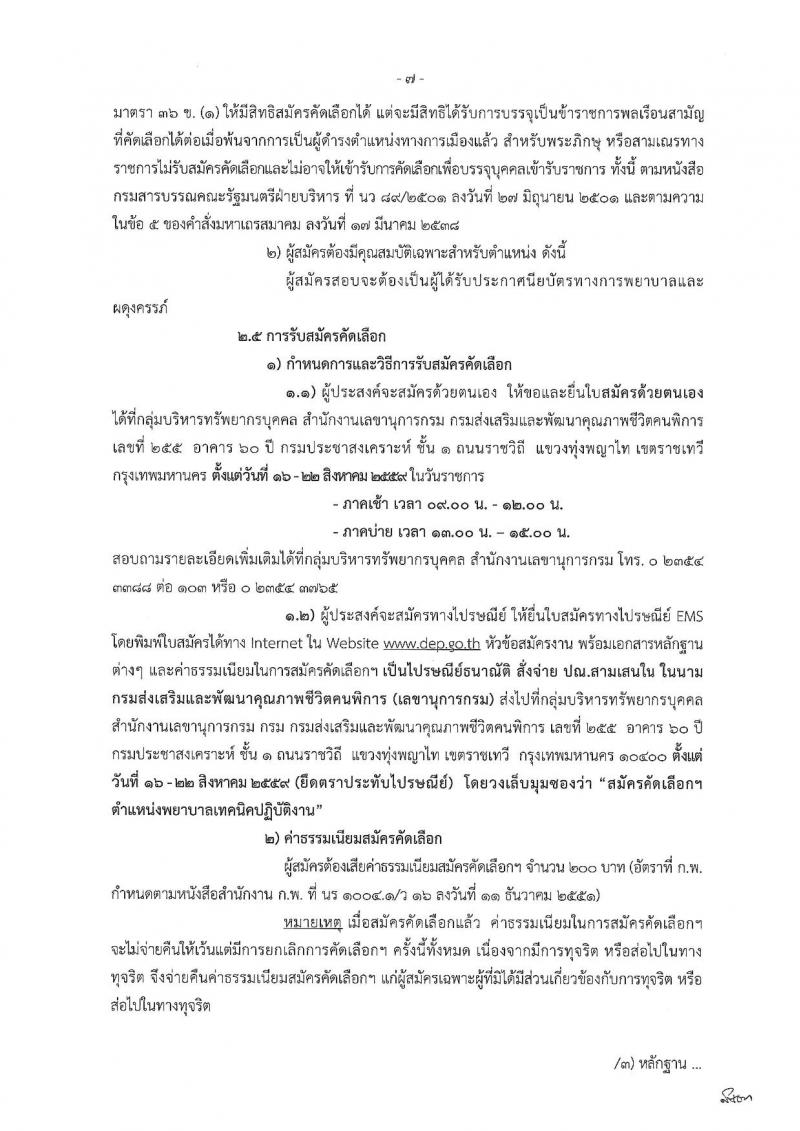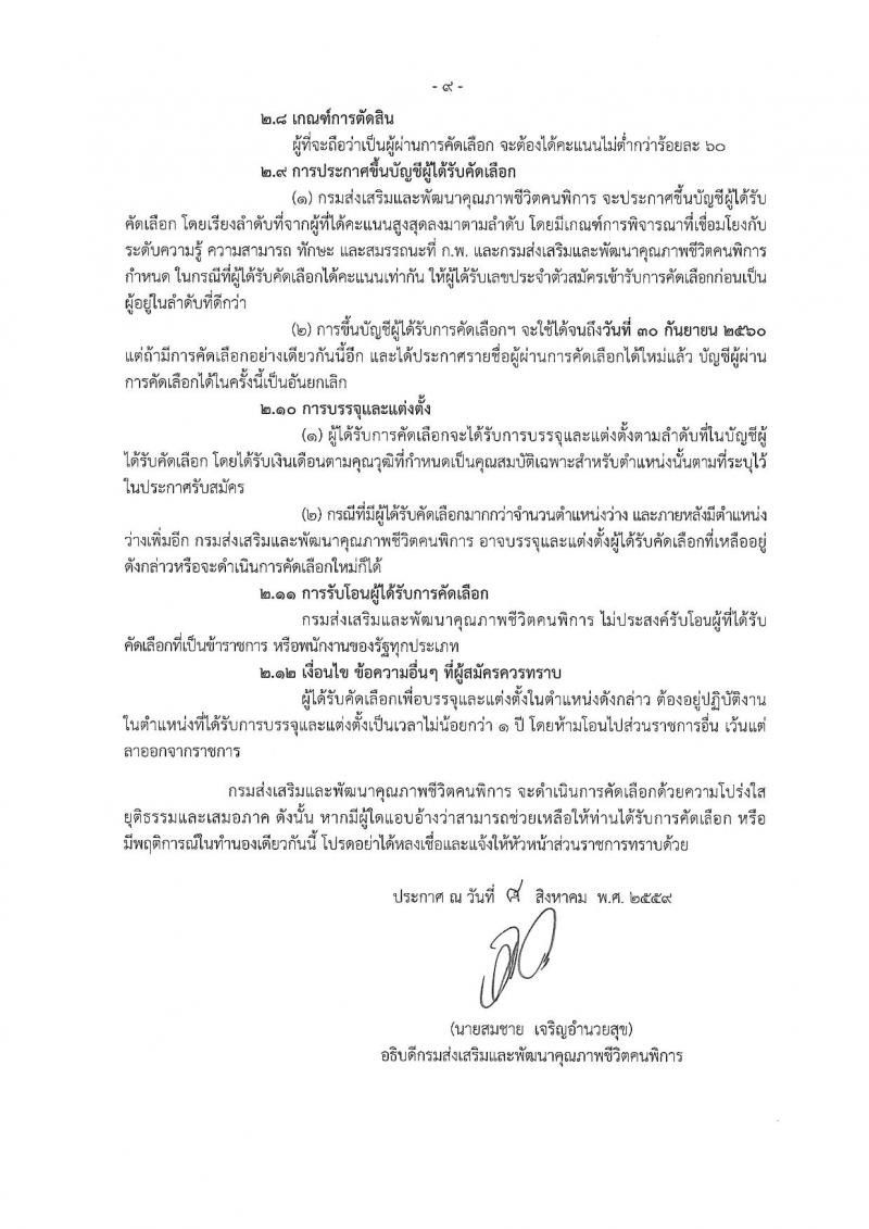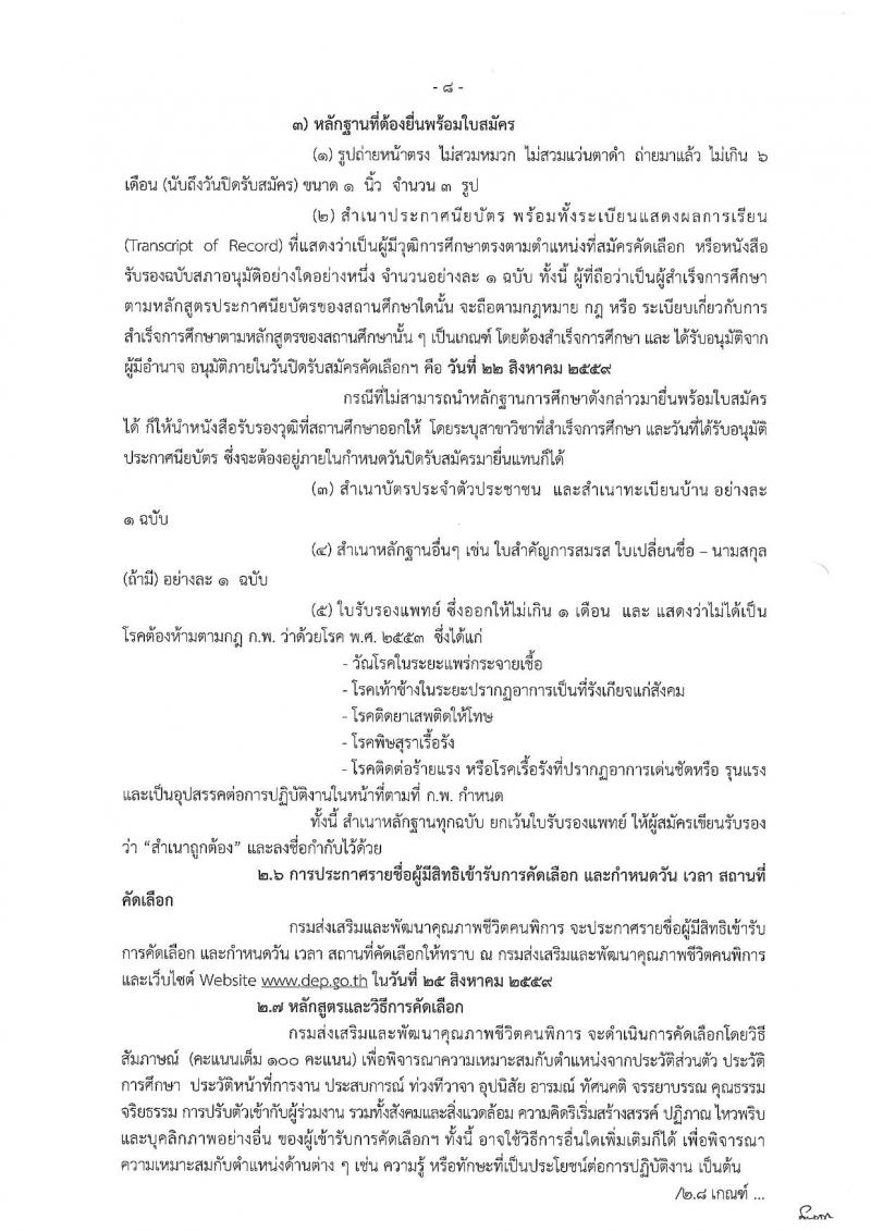 กรมส่งเสริมและพัฒนาคุณภาพชีวิตคนพิการ ประกาศรับสมัครคัดเลือกเพื่อบรรจุและแต่งตั้งบุคคลเข้ารับราชการ จำนวน 2 ตำแหน่ง 2 อัตรา (วุฒิ ป.ตรี) รับสมัครสอบตั้งแต่วันที่ 16-22 ส.ค. 2559