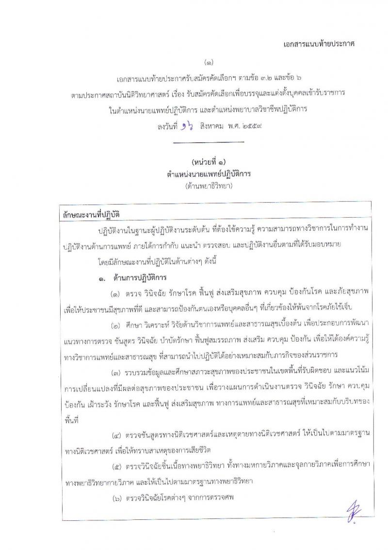 สถาบันนิติวิทยาศาสตร์ ประกาศรับสมัครคัดเลือกเพื่อบรรจุและแต่งตั้งบุคคลเข้ารับราชการในตำแหน่งนายแพทย์, พยาบาล (วุฒิ ป.ตรี) จำนวน 5 อัตรา รับสมัครสอบทางอินเทอร์เน็ต ตั้งแต่วันที่ 12-25 ก.ย. 2559